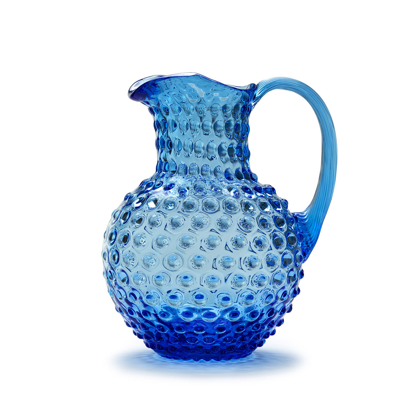 Beautiful handmade In Flore Caroline carafe in a light blue color. Our Caroline carafe is handmade in crystal glass with characteristics of sparkling clarity and brilliance. All carafes are handmade and therefore unique in color and appearance giving you a signature collectable piece.