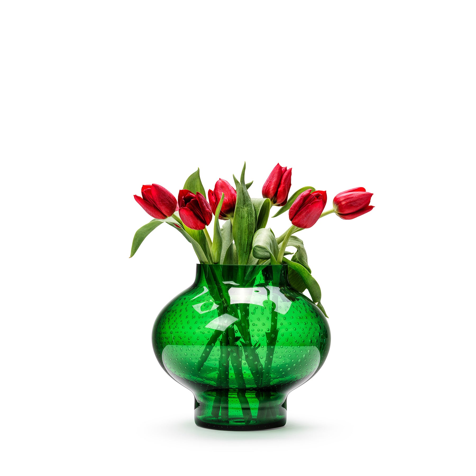 Beautiful In Flore Clara vase, large, in a light green color. Our Clara vase is handmade in glass with characteristics of sparkling clarity and brilliance. All vases are handmade and therefore unique in color and appearance giving you a signature collectable piece.
