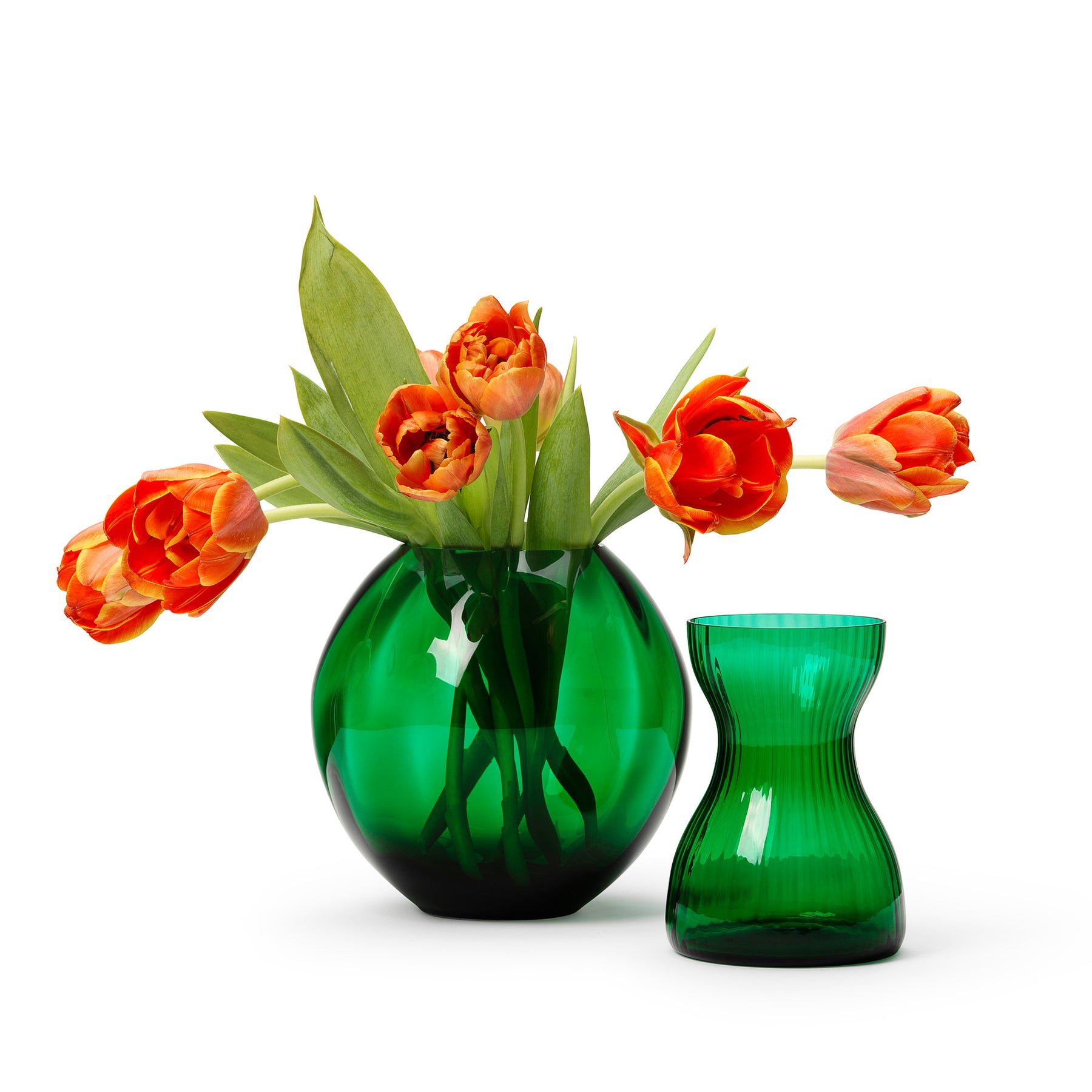 Beautiful handmade In Flore Eva Vase in a dark green color. Our Eva vase is handmade in crystal glass with characteristics of sparkling clarity and brilliance.