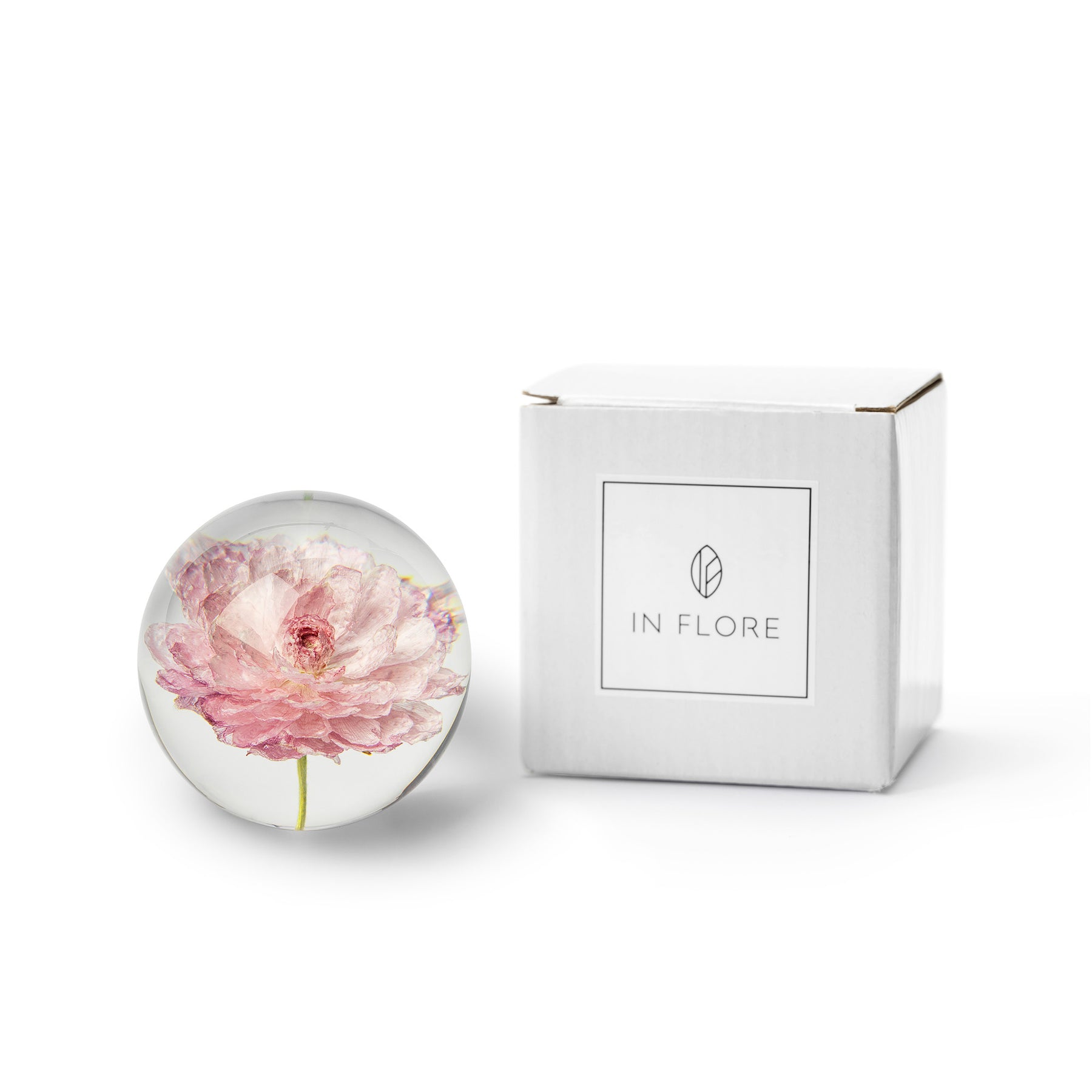 The Peony Rose "Ranunculus" paperweight is a mix of essential beauty in combination with being a practical item for your home. It is also a perfect gift for any occasion and comes in a beautiful In Flore gift box.
