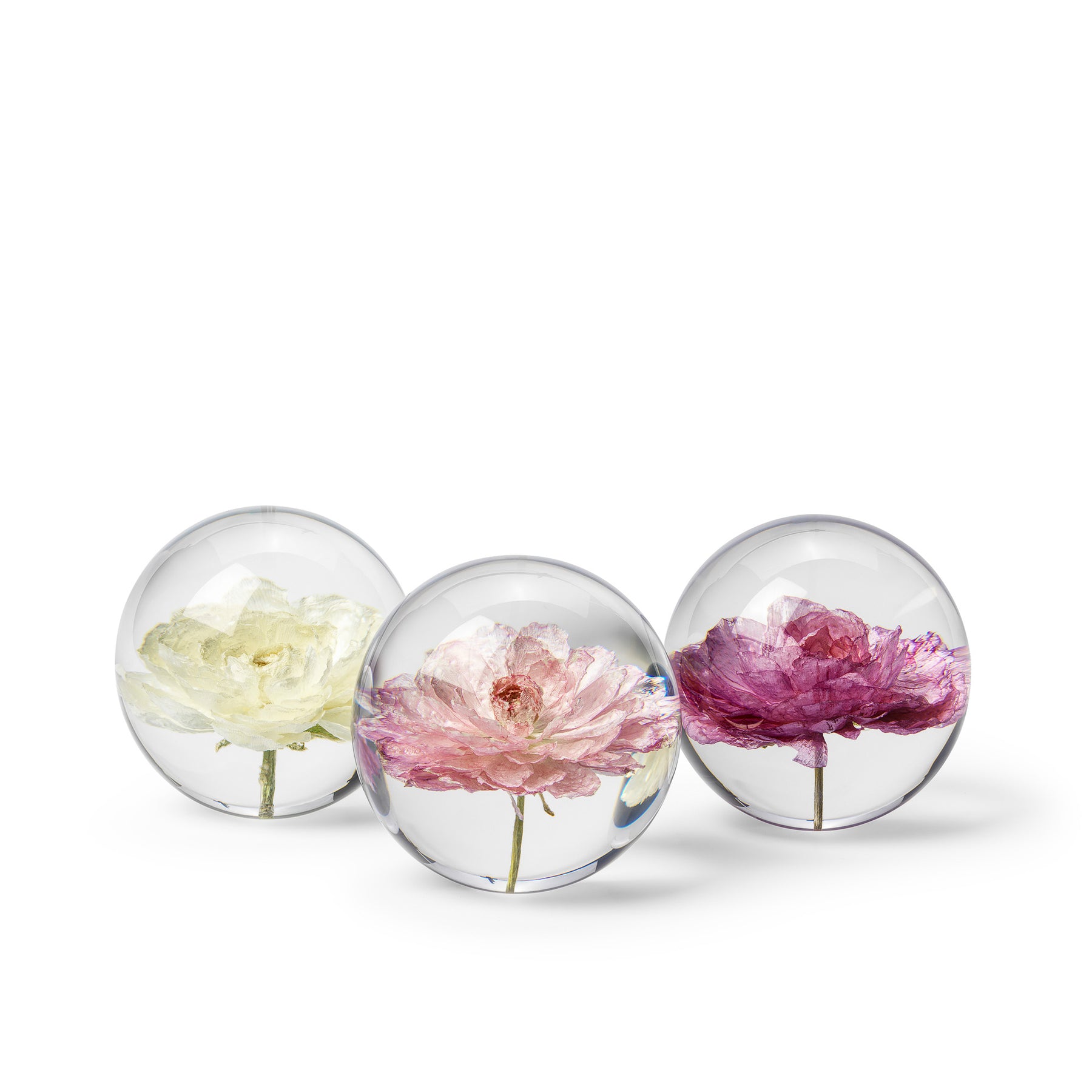 The Peony Rose "Ranunculus" paperweight is a mix of essential beauty in combination with being a practical item for your home. It is also a perfect gift for any occasion and comes in a beautiful In Flore gift box.