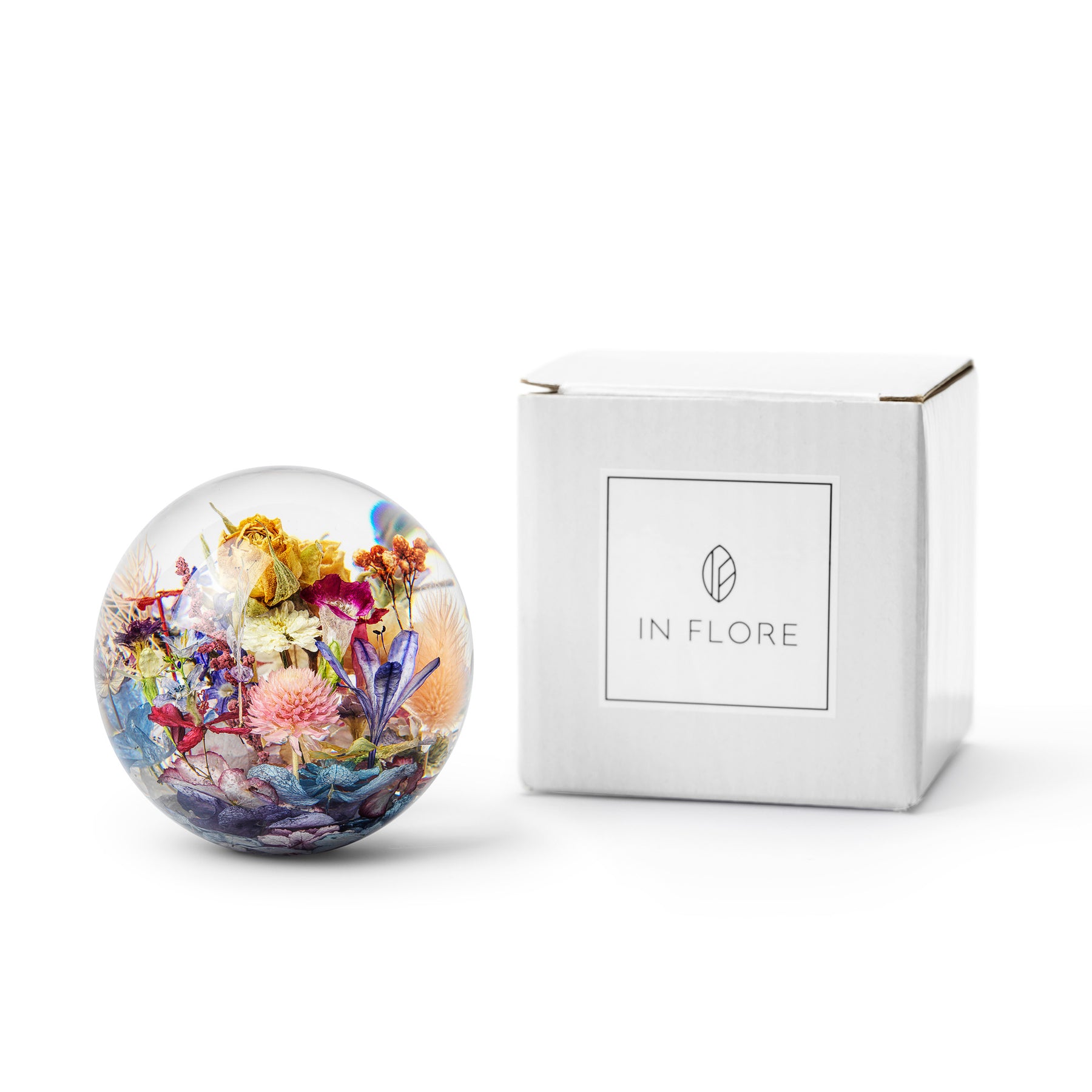 The wild flower paperweight is a mix of essential beauty in combination with being a practical item for your home. It is also a perfect gift for any occasion and comes in a beautiful In Flore gift box.